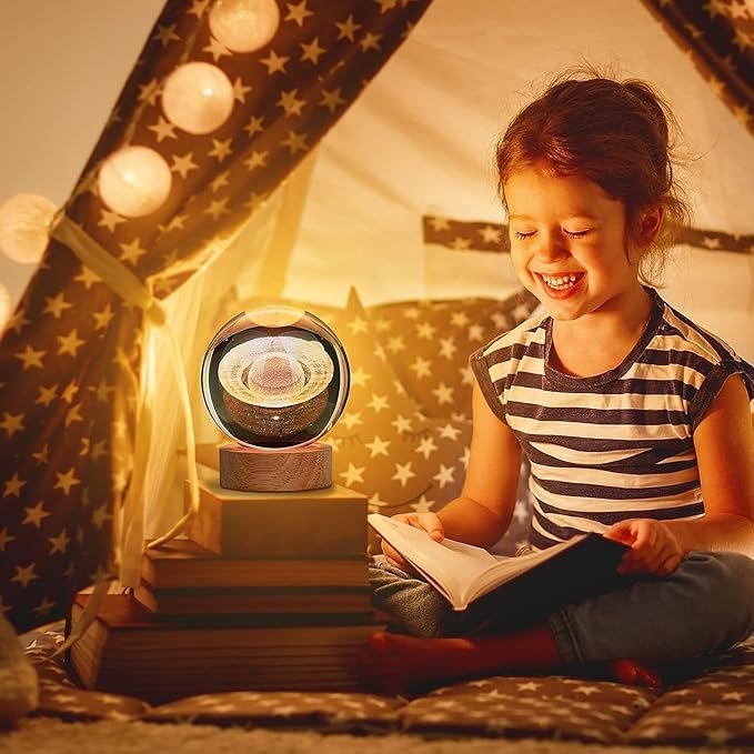【 Crystal Globe Night Lights】 The Solar System LED Night Lights Is Good Decoration For Your Bedroom, Sitting Room, Study, And Office, Especially For Children’s Room, Exquisite Gift For Kids, Teens, Friends, Astronomy Lover,Birthday Gifts For Children.