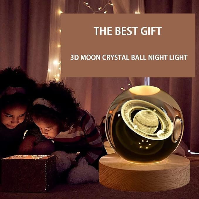 Crystal Ball Night Light | Dimmable Engraved LED Glass Ball Table Lamp with USB and Wooden Base for Home Decor, Office, Birthday Gift & Kids Bedroom