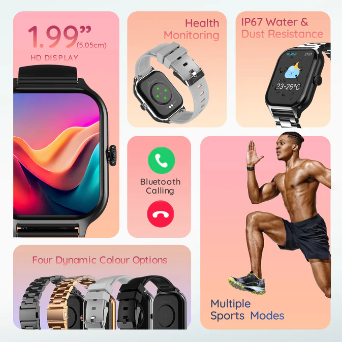 Bluetooth Calling: Stay connected seamlessly with Bluetooth Calling, enabling convenient communication directly from your wrist.