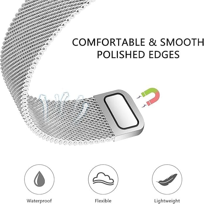 【Strong magnetic & Breathable】:iwatch magnet band is Strong magnetic clasp for closure to avoid the metal mesh band from falling off and being loose,and the mesh loop strap breathable and comfortable, sweat-proof and no rash.the stylish metal band is suitable for any occasion,magnetic band for apple watch 10 9 8 7 is very comfortable to wear all day long